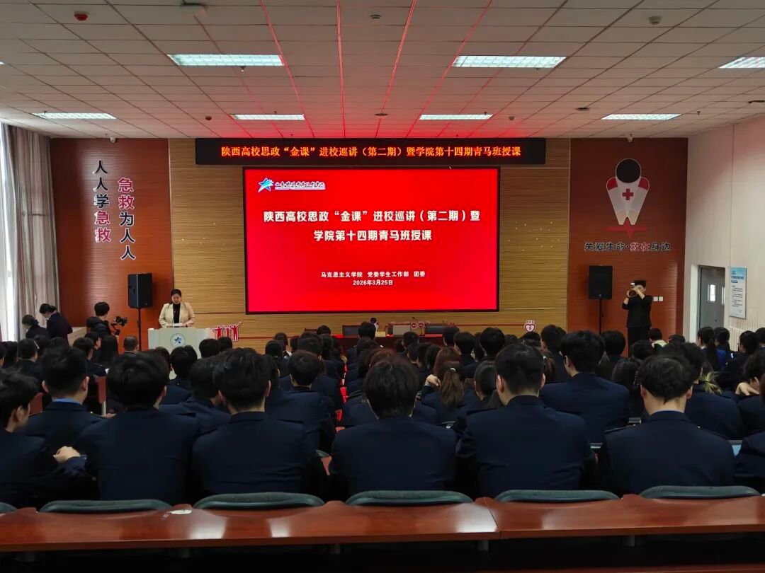 陕西高校思政“金课”进校巡讲(第二期)暨学院第十四期青马班授课顺利举行 为全面落实立德树人根本任务,引导青年大学生在理论学习中筑牢信仰之基、坚定理想信念、厚植家国情怀,3月25日下午,陕西高校思政“金课”进校巡讲(第二期)暨学院第十四期青马班授课在电气工程学院一楼报告厅举行。党委学生工作部、团委、马克思主义学院相关老师,二级学院辅导员、班主任代表,以及第十四期青马班全体学员近200人参与活动。活动由马克思主义学院副院长赵建英主持。...