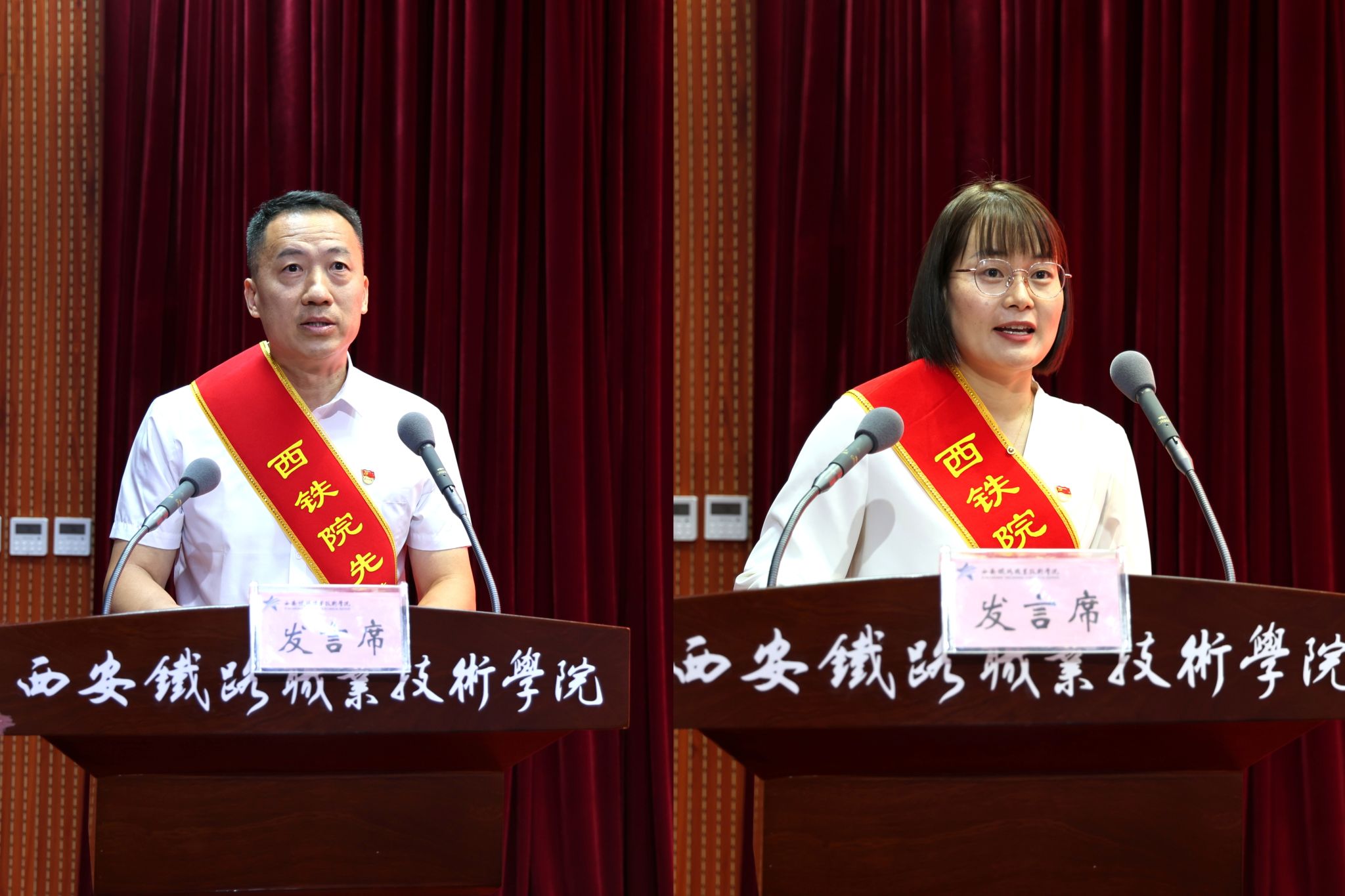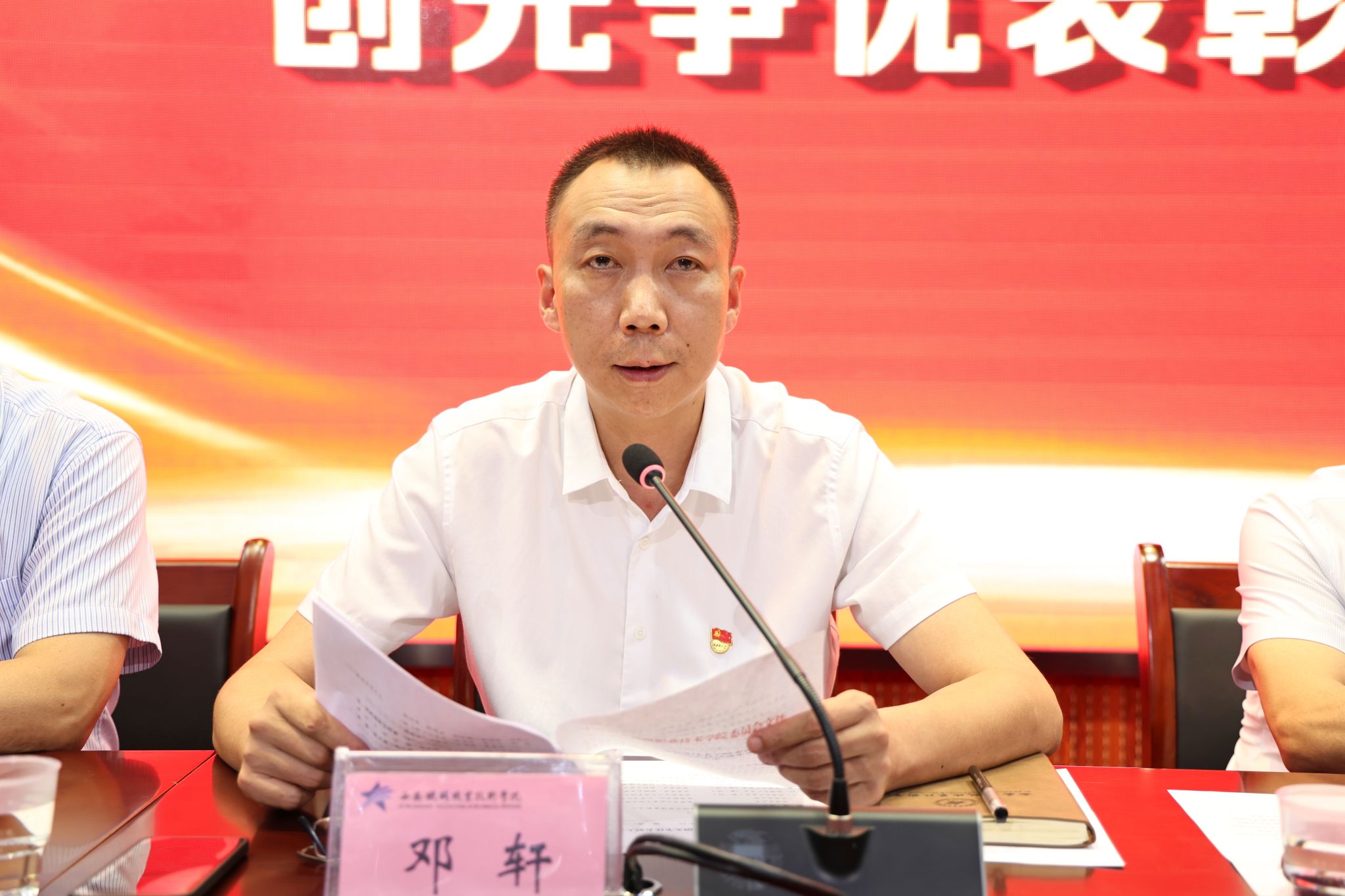 学院党委副书记、纪委书记邓轩宣读了《关于表彰2025年度创先争优先进集体和先进个人的决定》,大会对教研学工党总支等4个先进党总支、教研学工党总支现教图书党支部等11个先进党支部、临潼校区党总支离退休党支部第二党小组1个党小组、程颖菲等79名优秀共产党员和谭松等14名优秀党务工作者进行了表彰。电气工程学院党总支学生工作党支部书记马纪、机电工程学院党总支教学第二党支部党员张宗芳分别代表受表彰的先进集体和个人做了发言。