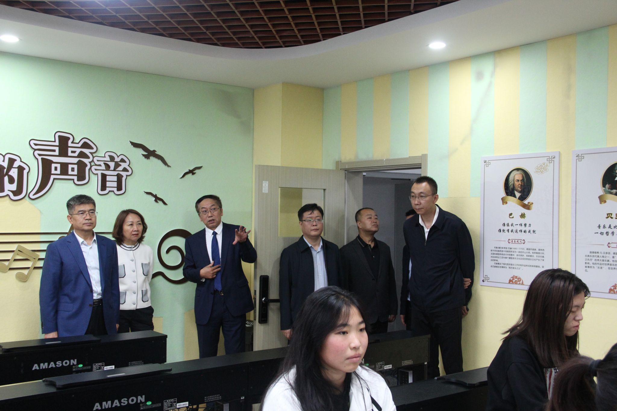 上午9时20分,学院领导班子一行抵达校区,首先前往5号楼实训中心,逐层参观了学生手工作品展览室、非遗古琴工作室和各实训室,实地检查理实一体化课程开展情况。在音乐实训室,姚颖骏老师正指导学生进行音乐专业训练,悠扬的乐声在实训室中回荡;在保育实训室,文静老师专注于培养学生的保育专业能力;在微格实训室,胡蕊老师在实训中提升学生的教学技能;在两间美术实训室,杜鹃老师和翁娜老师分别带领学生进行美术创作;在多功能厅,杜淅茜老师带领学生开展沉浸式舞蹈艺术欣赏教学。