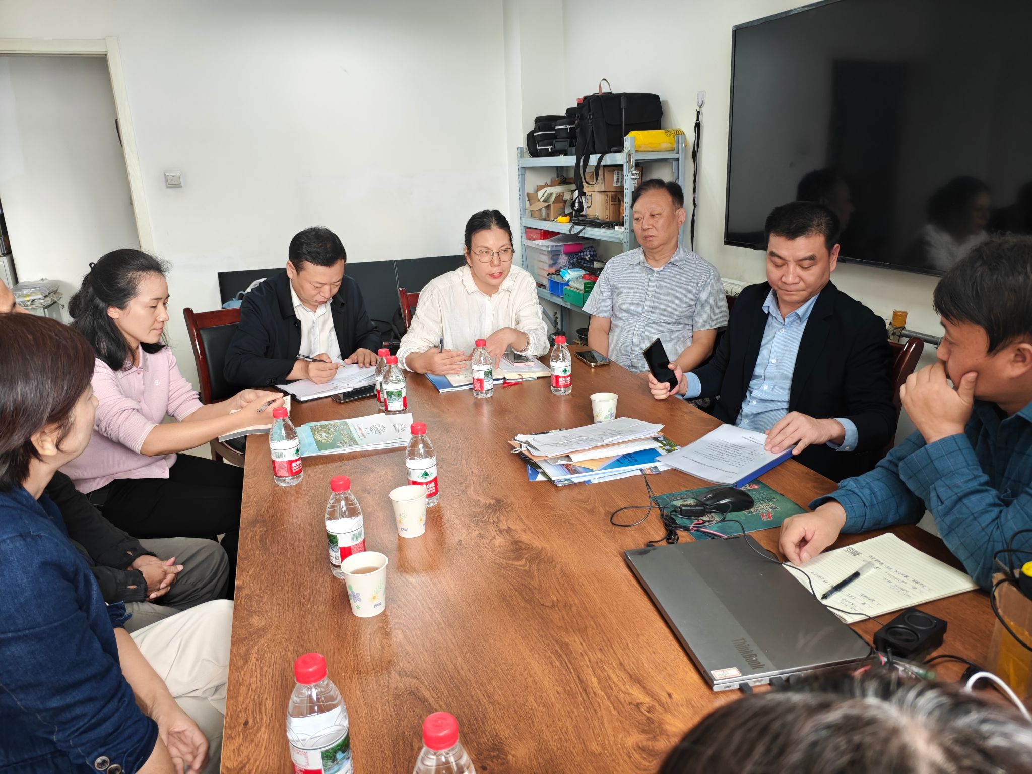 调研首站来到陕西未来测绘科技有限公司,公司总经理申健对调研团队予以热情接待。申健详细介绍了公司的核心业务板块,分享了近年来在测绘地理信息领域,尤其是围绕铁路基础设施建设与运维所开展的主要研究课题,同时阐述了公司的未来战略发展规划。他着重提及了“无缝铁路位移观测相机”这一前沿技术项目,并基于此提出具体的校企合作构想,以校企共同申报“科学家+工程师”队伍建设项目为契机,期望与学院在技术研发、数据分析和人才培养等方面建立深度合作关系,共同攻克技术难题,推动项目落地应用。靳丽君、张军、冯国良及随行教师围绕技术细节、潜在合作点与企业方展开了热烈且深入的探讨,现场气氛活跃,思维碰撞不断。