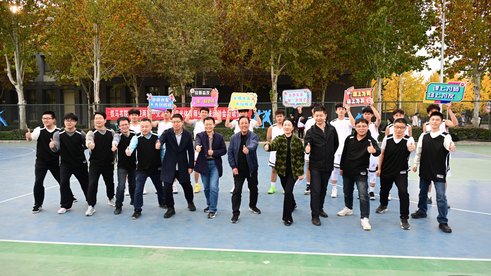 11月3日,学院牵引动力学院(铁马书院)在校园篮球场隆重举行一站式学生社区建设“四进两联一交友”活动启动仪式暨阳光体育活动。学院院长陈红出席本次活动,人事处处长赵铁民、纪委副书记朱叶、财务处副处长刘晓婷、马克思主义学院副院长赵建英、纪委办公室主任肖贤、牵引动力学院(铁马书院)院长林辉、牵引动力学院(铁马书院)党总支书记李贞伟、牵引动力学院(铁马书院)副院长张省伟、及各教研室老师、学工办全体辅导员、班主任与同学们共同参与,以昂扬姿态开启社区育人与体育育人融合发展新篇章。本次活动由西铁院牵引动力学院(铁马书院)党总支副书记张博雅主持。