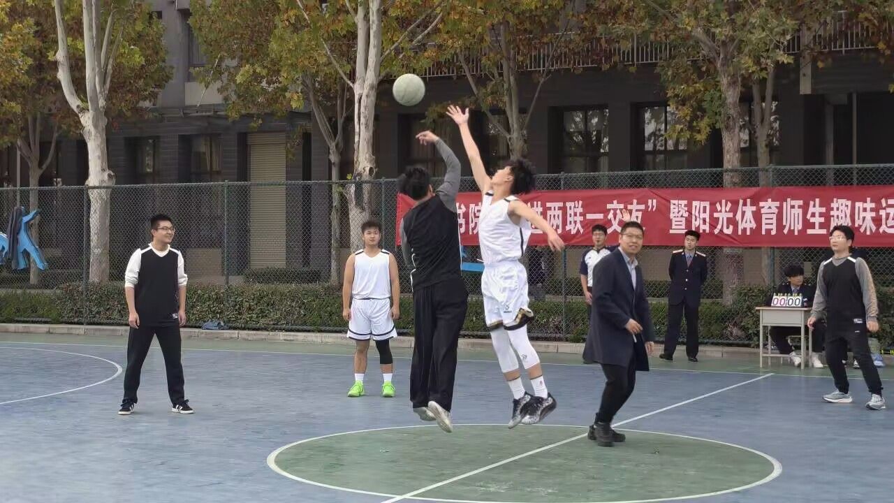 宣誓仪式结束后,师生篮球比赛拉开阳光体育活动的序幕。随着裁判哨声响起,教师队与学生队迅速进入状态,赛场之上,双方队员默契配合、攻防交错。每一个精彩瞬间都引来同学们的阵阵欢呼,场边加油声、呐喊声此起彼伏。比分交替上升的竞技过程中,师生间的距离悄然拉近,篮球不仅传递着力量与技巧,更架起了一座跨越身份的沟通桥梁,让协同拼搏的精神在赛场之上熠熠生辉。