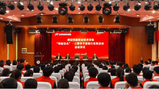 为深入贯彻习近平总书记关于“延安精神是党的宝贵精神财富,要代代传承”的重要指示精神,积极响应省委教育工委等九部门联合印发的《“到延安去”・三秦学子圣地行工作方案》,引导学生深刻把握延安精神时代价值,用好延安革命圣地丰富红色资源,充分发挥实践平台育人作用,11月26日下午,学院在港务校区隆重举行“到延安去”・三秦学子圣地行实践活动出征仪式。学院党委副书记任治军,党委宣传部、党委学工部、团委、马克思主义学院等部门负责人,各二级学院党总支书记及236名实践团师生齐聚现场,共同见证这场承载初心与使命的红色征程启航。仪式由团委办公室主任田辰主持。