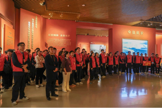 29日下午,师生们走进延安革命纪念馆,宏大的历史叙事与珍贵的革命文物,让全体学员深刻感受到信仰的力量。同学们驻足凝视、认真聆听,在革命历程中感悟先辈们的理想信念与责任担当,深刻领会延安精神的丰富内涵与磅礴力量,进一步坚定了“强国有我”的青春志向。
