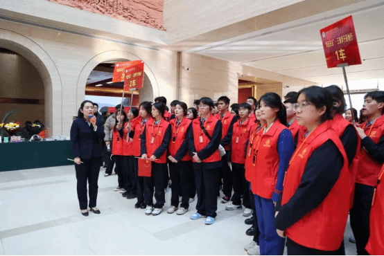 师生抵达延安后,开营仪式隆重举行。团委办公室主任田辰向实践团成员介绍了本次活动具体行程,强调了活动安全与纪律要求,解读了学习目标及实践意义;党委学工部副部长马荣为实践团队授旗,号召同学们在红色沃土上感悟初心使命、汲取奋进力量。
