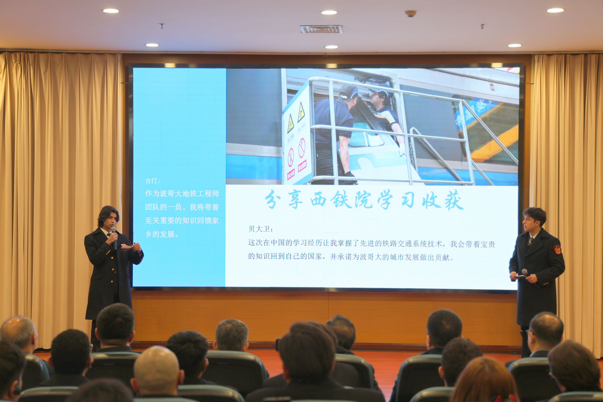 12月3日,哥伦比亚波哥大地铁一号线第二批留学生结业典礼在西安地铁2号线渭河车辆段隆重举行。陕西省委外办、西安市委组织部、中国港湾工程有限责任公司、西安市轨道交通集团有限公司和西安铁路职业技术学院相关领导应邀出席典礼,共同见证39名哥伦比亚学子圆满完成学业、开启人生新征程。仪式现场,西安铁路职业技术学院党委书记赵春平发表致辞,并向全体结业学子送上殷切寄语。
