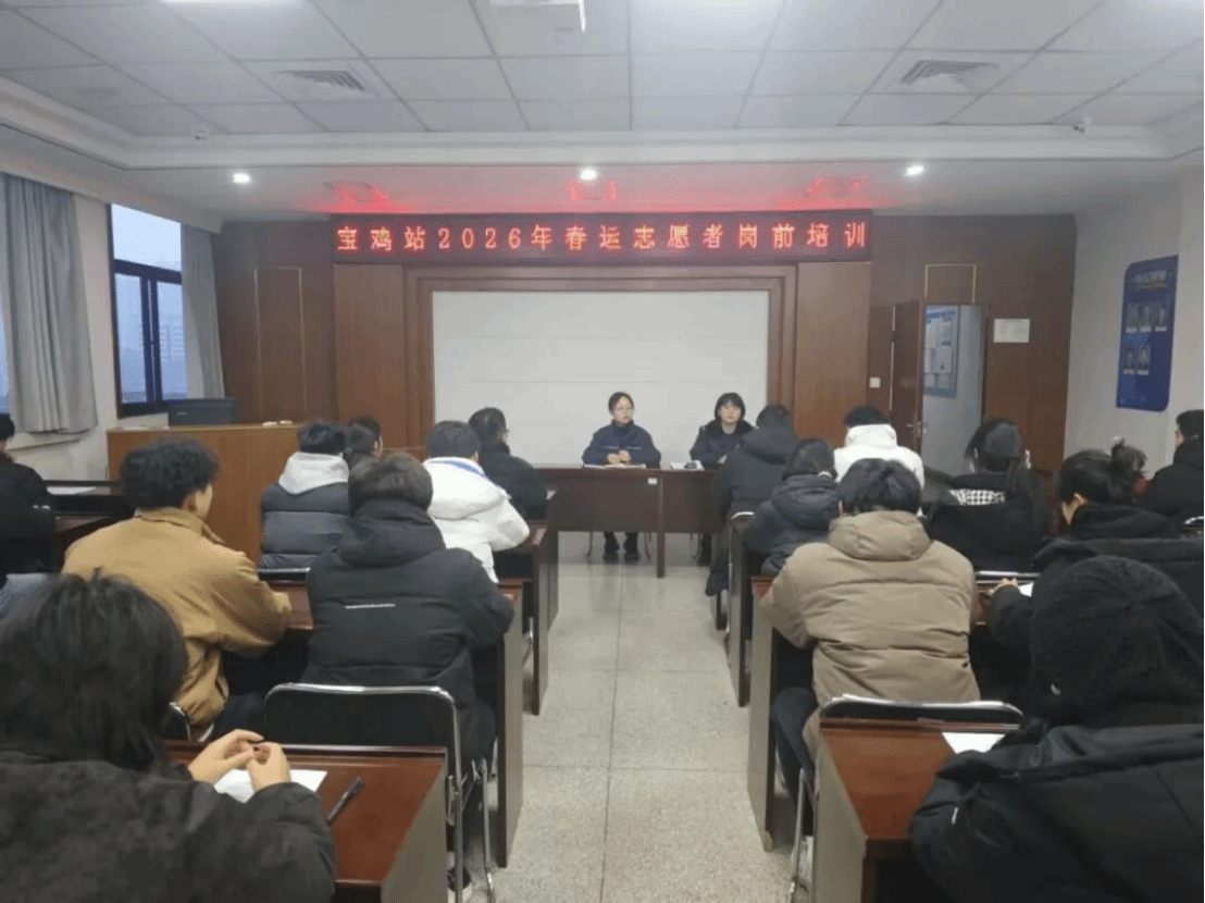 1月31日上午8时,全体志愿者在完成期末考试并经过短暂休整后,准时于各服务车站集结报到,并接受系统岗前培训。学院343名志愿者服务于西安局辖内西安站、西安北站、宝鸡南站、宝鸡站、杨凌南站、汉中站、安康站、渭南北站、延安站、榆林站等十个车站;36名志愿者服务于兰州局辖内兰州站、兰州西站、银川站、庆阳站、天水站、天水南站、武威东站、定西北站等八个车站。2026年春运于今日(2月2日)正式启动,学院志愿者们也已全面进入服务状态。西安局343名志愿者今日起正式上岗,兰州局36名志愿者将于明日投入服务。他们将以专业、热情、细致的服务,正式开启服务2026年铁路春运志愿工作的序幕,在实践中诠释青年担当。