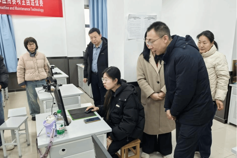 邓轩一行实地查看了学生技能大赛备赛情况,与备赛教师、学生面对面交流,详细了解备赛进度、训练难点、生活保障以及赛事准备等相关情况,并观看了学生现场演示。邓轩分享了深刻的感悟,“要注重生命的质量,ρ=m×L,即生命的质量=生命的密度×长度,密度就是每天完成的事情”。他鼓励备赛师生,合理规划训练节奏,既要刻苦钻研技能、打磨专业本领,也要注重劳逸结合、保持良好状态,以饱满的热情、昂扬的斗志、严谨的态度投入到后续备赛工作,力争取得优异成绩,为学院争光添彩。