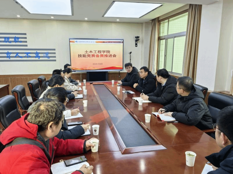 1月28日,西安铁路职业技术学院副院长滕勇深入土木工程学院,实地查看指导2026年学生技能竞赛备赛情况,并与指导教师开展座谈交流,为备赛师生带来学院领导的关怀与慰问。土木工程学院院长张军、教务科科长刘锋、综合办副主任张瑞鹏及全体指导教师参加座谈。