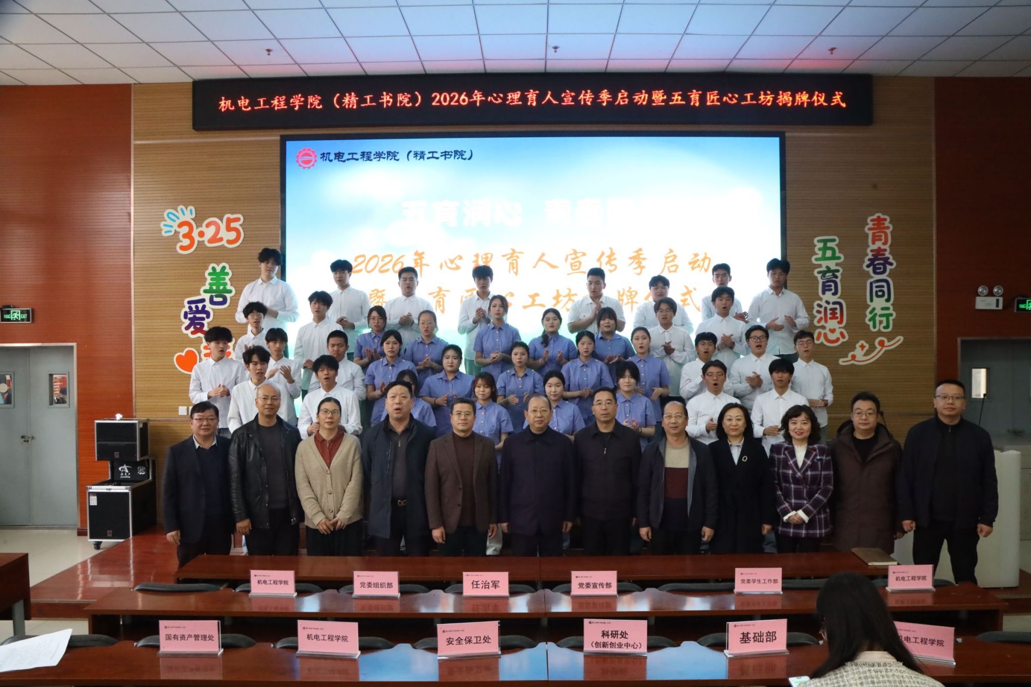 为深入落实立德树人根本任务,推动心理健康教育与“一站式”学生社区建设深度融合,护航学生健康成长,3月25日下午,机电工程学院(精工书院)2026年心理育人宣传季启动暨五育匠心工坊揭牌仪式在学院一楼报告厅隆重举行。