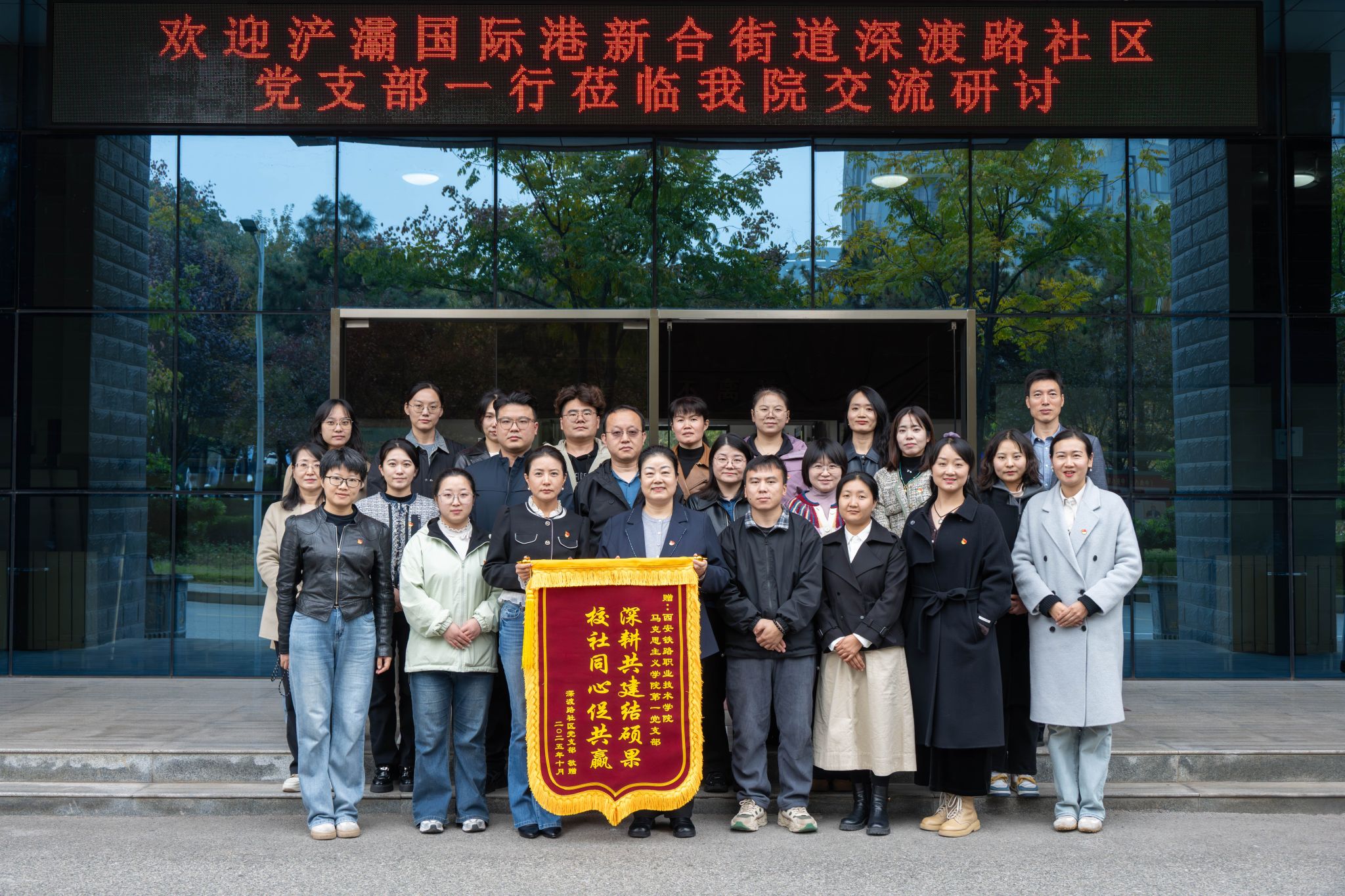 10月29日下午,马院国际党总支马克思主义学院第一党支部联合浐灞国际港新合街道深渡路社区党支部,在我校港务校区开展了“党建引领聚合力 携手共建促发展”主题党日活动,马院第一党支部全体党员、深渡路社区党员及群众代表共同参加了此次共建活动。