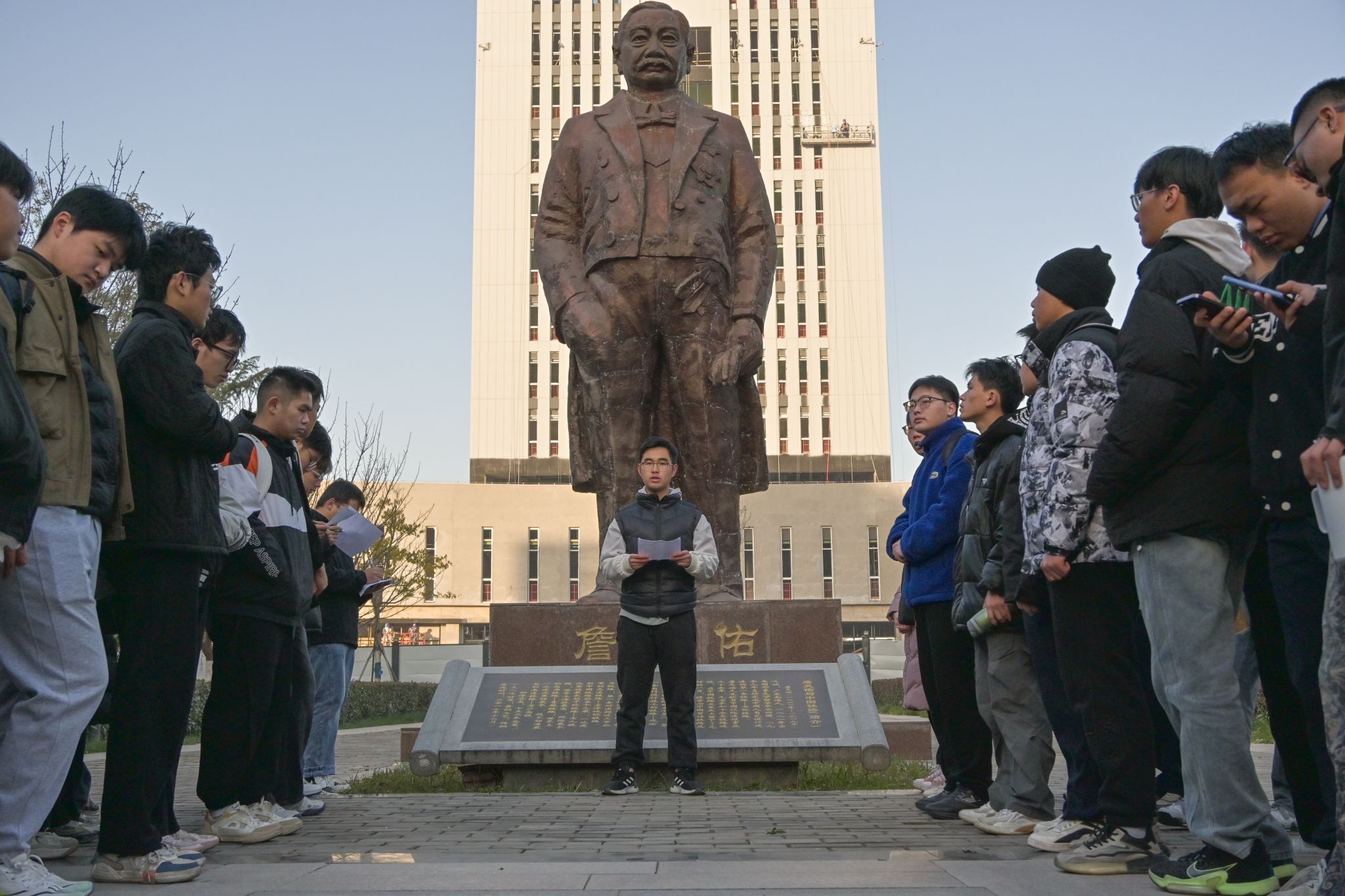在黄炎培先生雕像前,同学们讲述了一段关于教育救国与实业报国的生动故事。不仅感受到先贤炽热的家国情怀,更深刻体会到教育的力量与知识分子的担当,深刻理解了黄炎培先生一生倡导“手脑并用、做学合一”,致力于打破传统教育桎梏,开创了与中国实际相结合的职业教育之路。他在民族危难之际奔走呼吁,将个人理想融入国家需要,其“理必求真,事必求是”的言行风范,深深感染了在场学子。