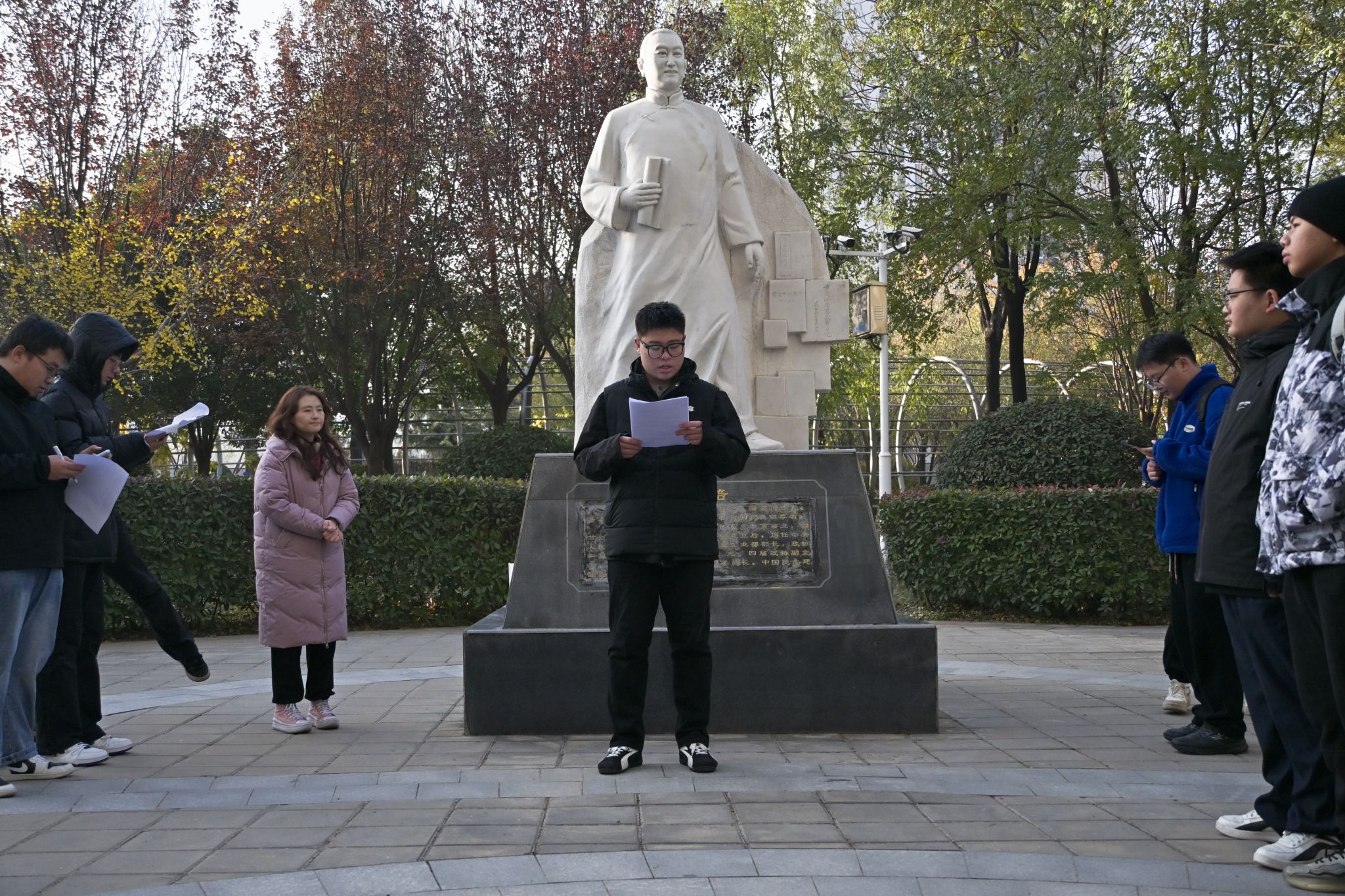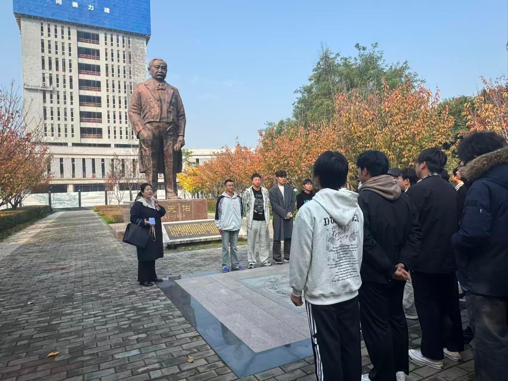 为深化同学们对课程内容的理解,将崇高的理想信念与所学专业紧密结合,2025-2026学年第一学期,赵建英、高瑞佳两位老师组织本班学生,依托校园文化景观开展“大思政课”实践教学。活动通过实地走访、沉浸体验的方式,引导学生感悟先辈事迹,将《思想道德与法治》第二章“理想信念”的理论内容与鲜活实景相融合,打造了一堂立体多样、生动深刻的校内“大思政课”。