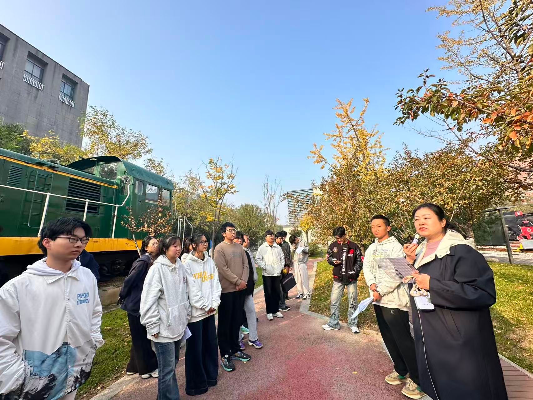 本次实践教学活动以“追随先辈脚步 坚定理想信念”为主题,师生共同参与、探求新知、共享成果。同学们结合我院的校园文化景观资源从不同角度讲述詹天佑和黄炎培分别对我国铁路事业以及职业教育做出的贡献和成就;结合港务区实训场,从多个维度讲解机车的性能特点、结构设计与实际功能,并通过梳理不同历史时期典型车型的演变轨迹,生动展现中国铁路事业从追赶到引领的发展历程与时代变迁。