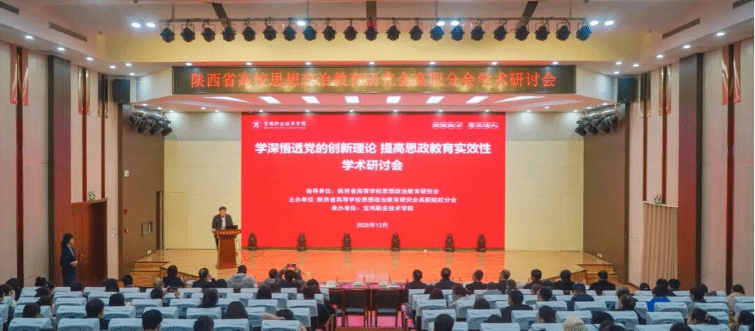 12月19日,陕西省高等学校思想政治教育研究会高职院校分会“学深悟透党的创新理论,提高思政教育实效性”学术研讨会在宝鸡职业技术学院成功举办,共有来自省内外30余所院校的近90名领导干部和教师参加。马克思主义学院院长邢卫红、副院长赵建英,获奖教师代表王文波、孙世昭参会。