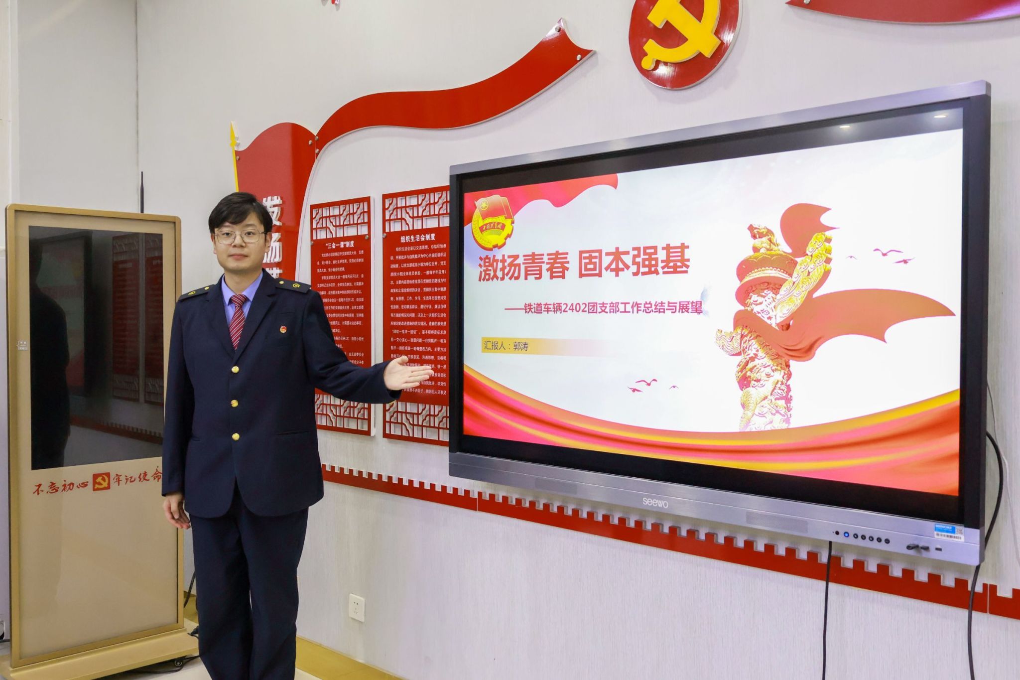 会议在庄严的《共青团团歌》中拉开序幕,激昂的旋律凝聚了全体团干部的奋进力量。会前,通过现场抽签确定了各支部书记的述职顺序,确保了大会流程的严谨有序。