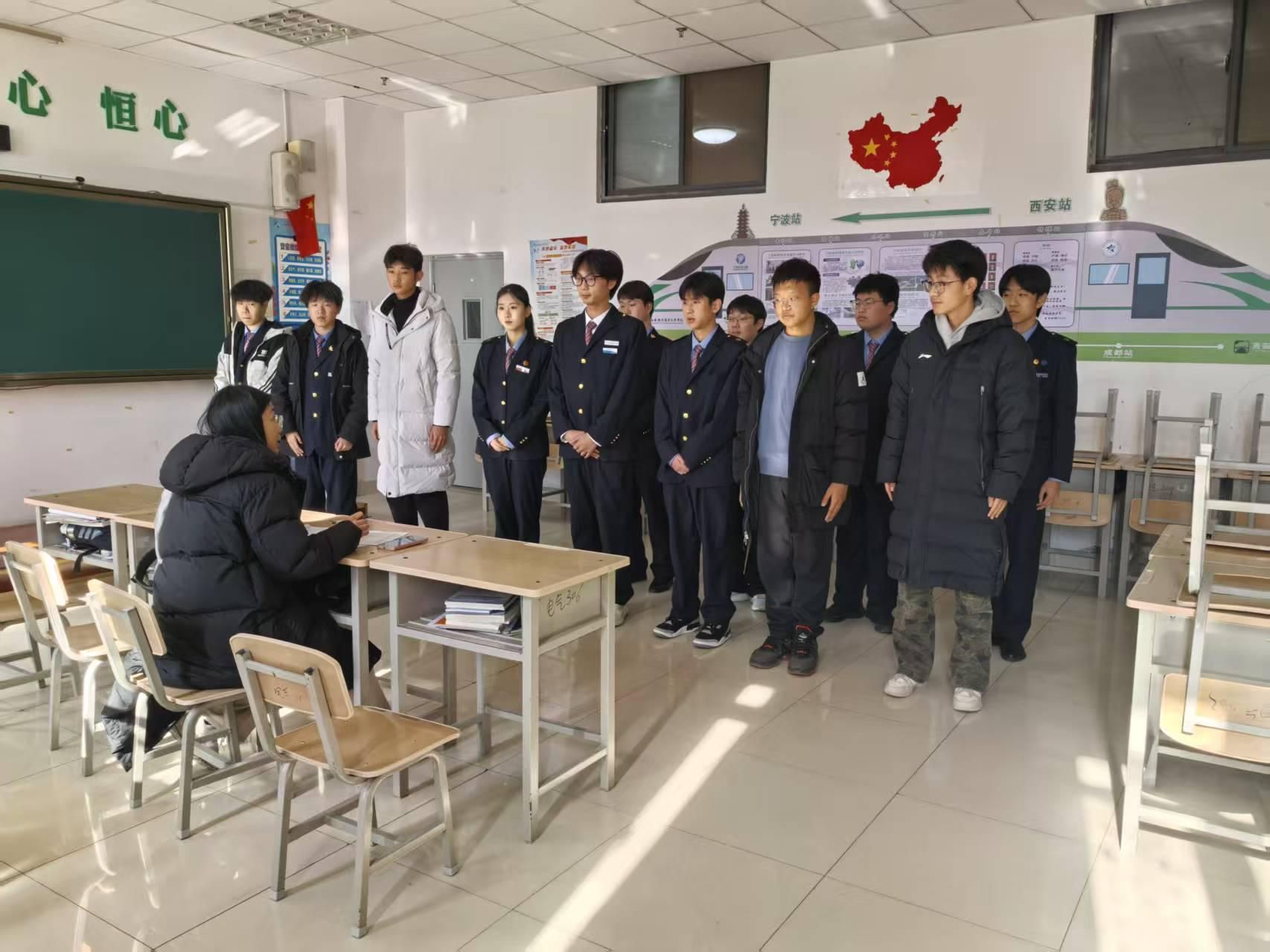 面试现场秩序井然,身着整齐制服的电气学子们列队有序、精神饱满,以积极昂扬的姿态迎接考核。面对评委老师围绕志愿服务认知、应急处理能力、铁路专业知识等核心维度提出的问题,同学们沉着冷静、从容应答,既展现出扎实的专业知识功底,更传递出投身春运志愿服务、践行铁路人责任担当的坚定决心,充分彰显了电气学子的良好风貌。