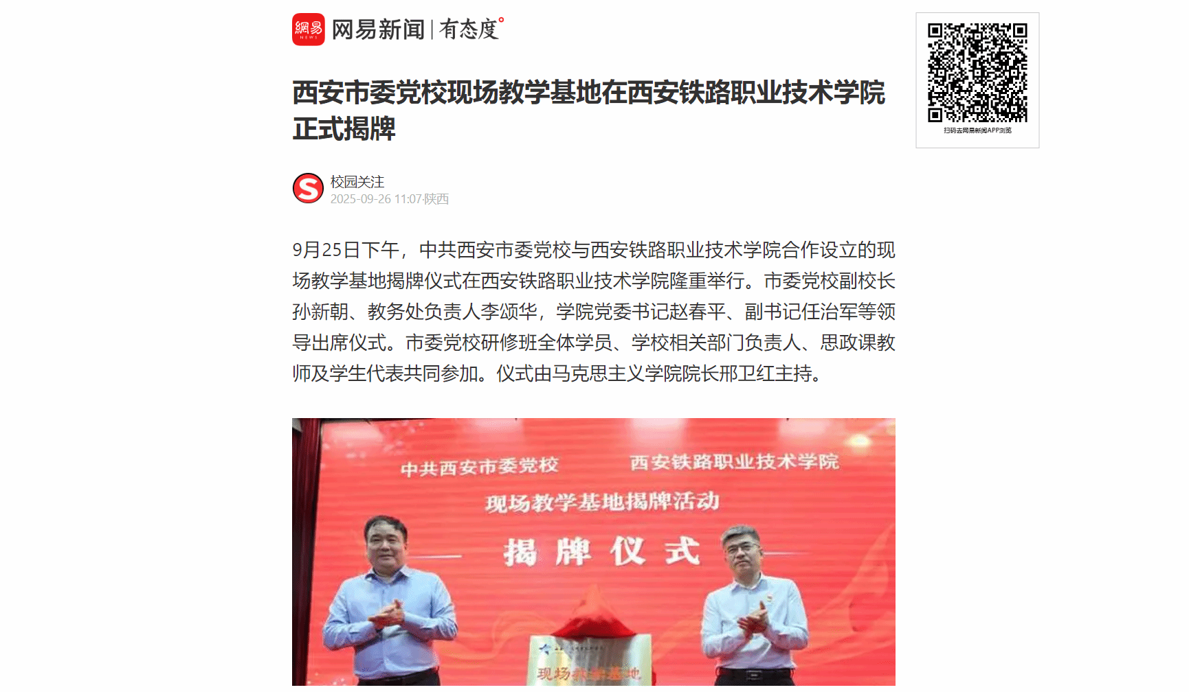 西安市委党校现场教学基地在西安铁路职业技术学院正式揭牌