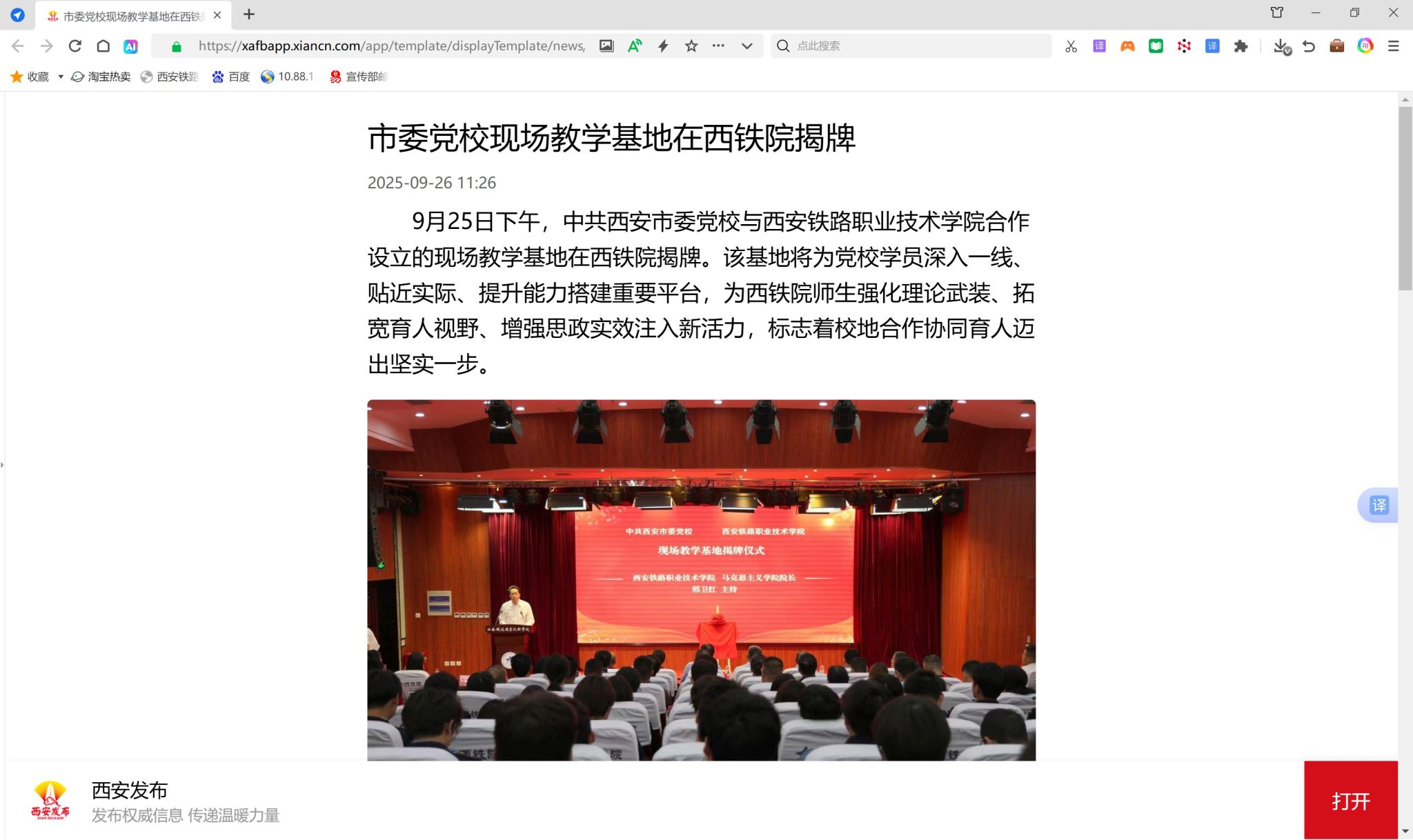 西安发布:市委党校现场教学基地在西铁院揭牌