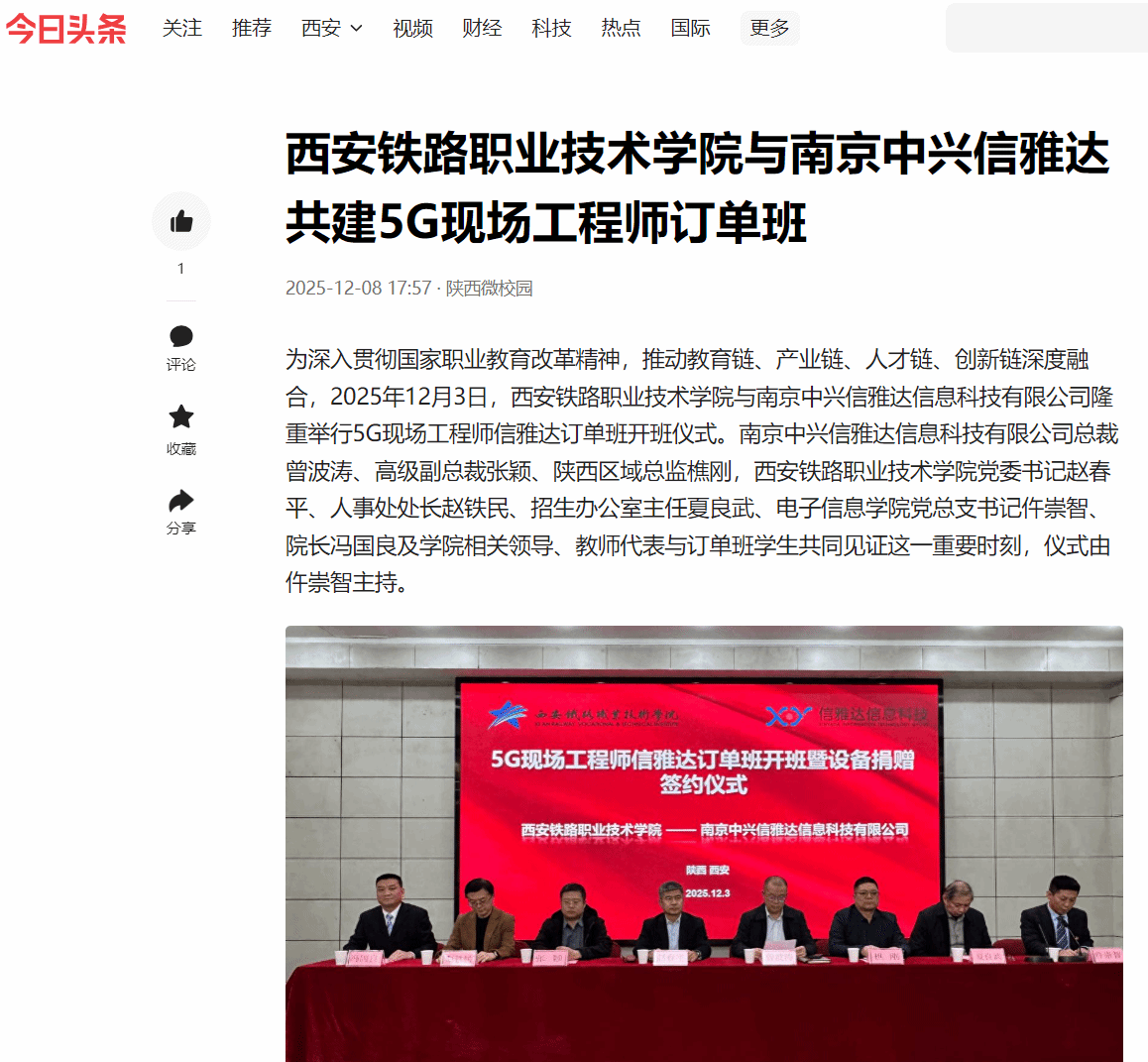 西安铁路职业技术学院与南京中兴信雅达共建5G现场工程师订单班