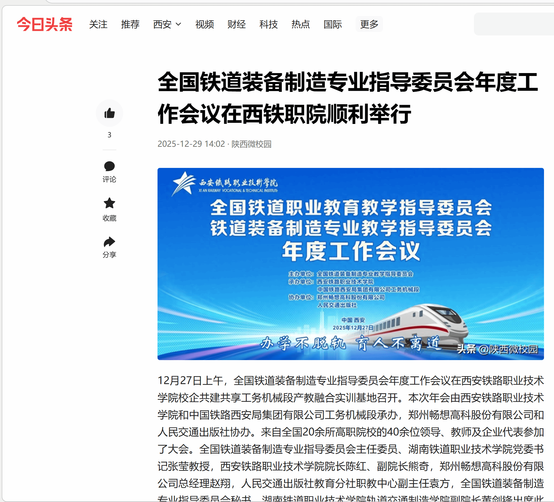 全国铁路装备制造专业指导委员会年度工作会议在西铁职院顺利举行