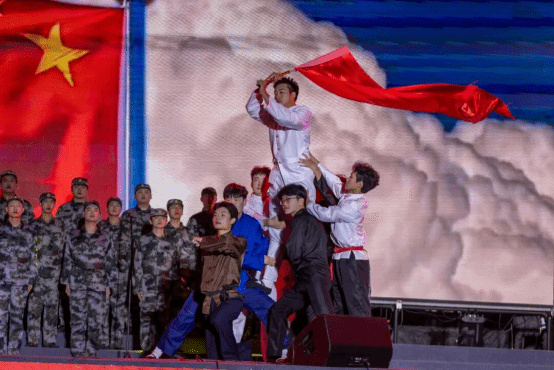 土木工程学院通过情景歌舞《红旗颂·黄河魂》的壮阔表演,重温从抗战烽火到大国崛起的峥嵘岁月,将晚会推向高潮,激发新生的爱国热情和民族自豪感。